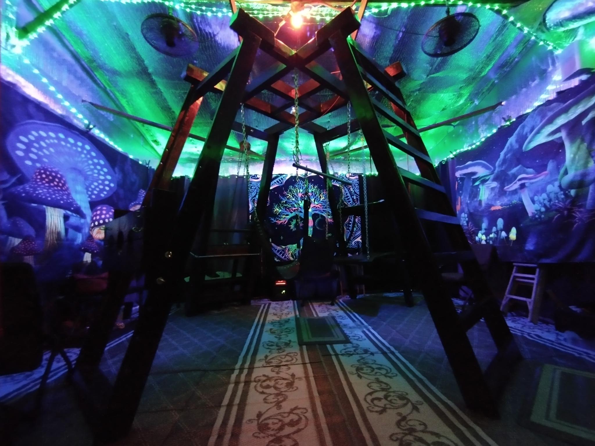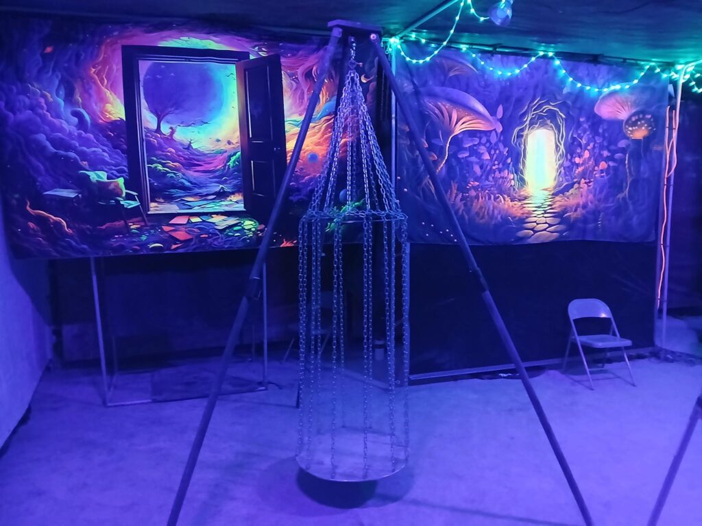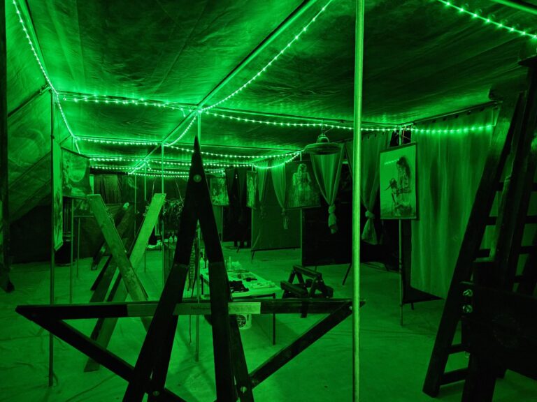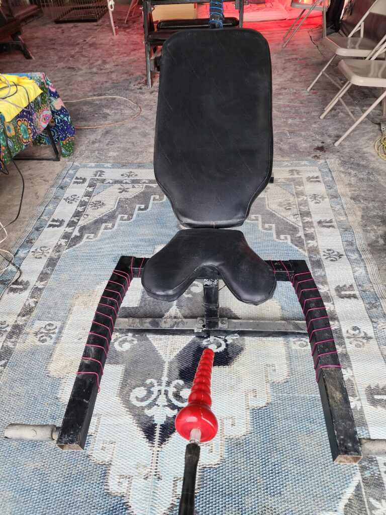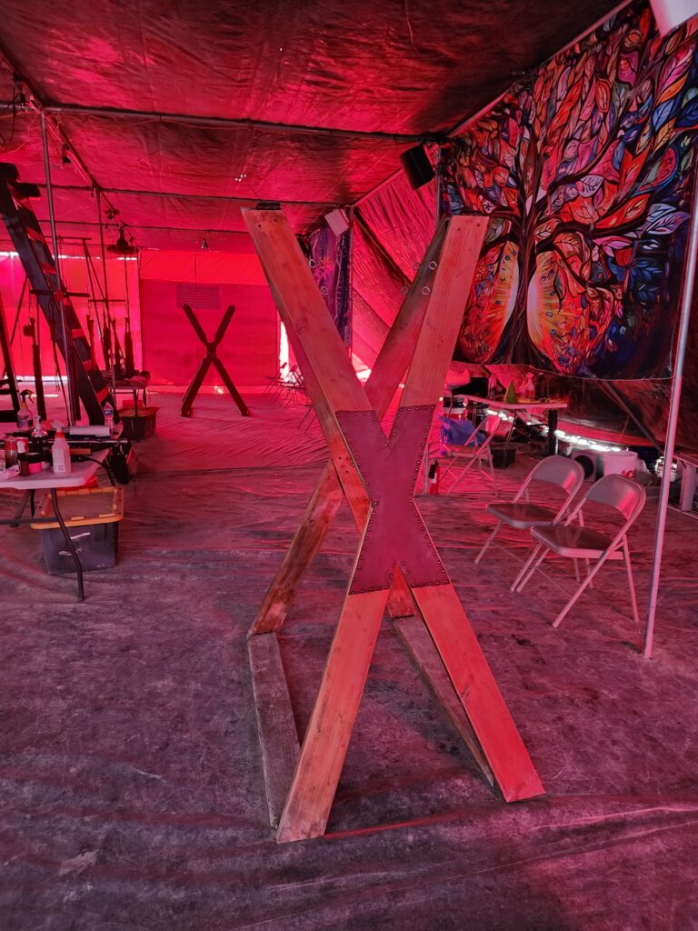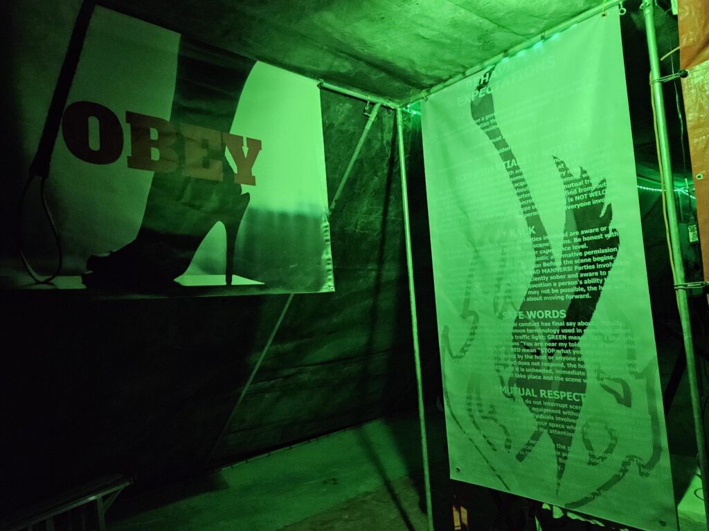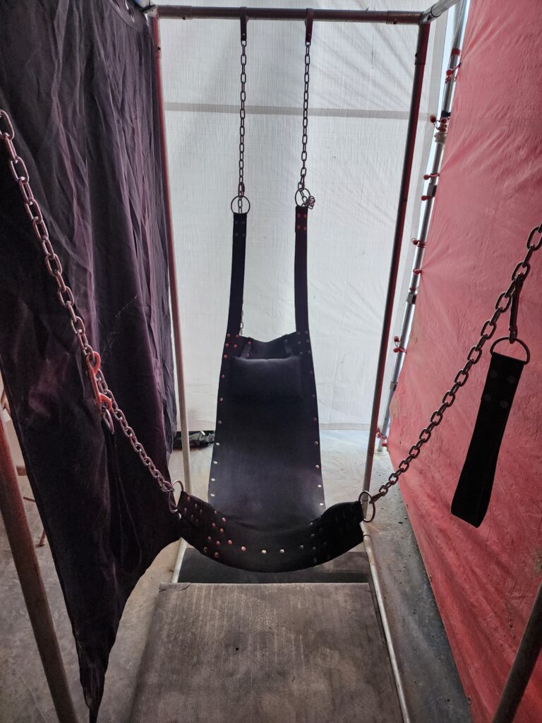 Our Dungeon is the crown jewel of Camp Retrofrolic; open day and night it’s a fully equipped, immersive space that’s widely regarded as the best on the playa. It is our gift to the Burning Man community, offering a sanctuary of consensual exploration, connection, and play.